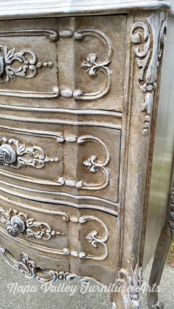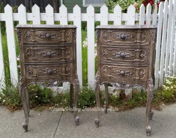 These beauties have been finished in General Finishes Snow White and Driftwood, with Van Dyke Brown glaze and Enduro Top Coat in Satin. I tried to represent the age and fragile beauty of the pieces in the patina I created. The greyish brown color is a neutral that could go with any color palette.