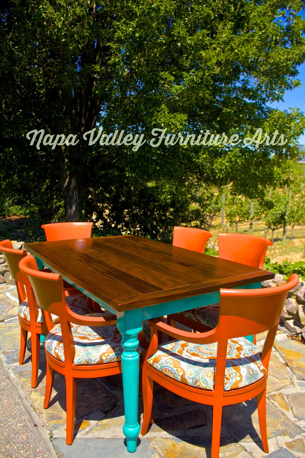 This custom dining set was so fun to put together and recreate! My client wanted a bright, fun dining set for her Oregon beach house. I have a pinterest page that documents the search from initial inspiration photos, to the raw pieces, to the finished set. https://www.pinterest.com/karmamommy1462/dining-set-ideas/